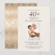 Elegante y vintage invitación personalizada para aniversario de bodas de 40 años con damasco dorado y crema con una foto. El texto de esta tarjeta es totalmente personalizable y se puede cambiar para cualquier celebración de aniversario. Contactame para obtener ayuda con tus personalizaciones o para solicitar productos adicionales de Zazzle que coincidan o coordinen con tu fiesta.