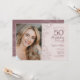 Elegante polvorienta rosa y mauve floral 50 cumpleaños invitación a fiesta con tu foto en la parte delantera de la tarjeta. Diseño moderno minimalista con acentos de dibujos botánicos y tipo de letra de guión tipográfico. Sencilla carta de invitación a la moda, perfecta para una elegante celebración de cumpleaños femenina. Se puede personalizar a cualquier edad. Invitaciones Zazzle impresas o una plantilla imprimible digital de descarga instantánea.