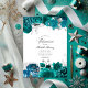 Verde azulado - invitación a la boda floral de color turquesa y plateado. Ideal para cualquier tema o boda en el jardín. El código QR al revés se dirige al sitio de su boda, donde la gente puede aprender más y ver más.