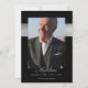 Este elegante y elegante diseño presenta antecedentes negros en el frente y en la parte posterior con falsos acentos plateados y la foto de su ser querido en la parte posterior. Simplemente complete la plantilla con la foto de atrás, sus detalles de "Celebración de la Vida" delante y detrás de la foto. Todo el texto se puede editar como se desee y la foto debe cambiarse por usted. Diseño por diseños de Holiday Hearts (derechos reservados). Foto de marcador de posición de plantilla cortesía de Pexels.