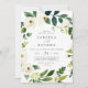 Esta elegante invitación floral blanca al frente y a la boda en la parte trasera es perfecta para un boda clásico. El moderno diseño vintage presenta un bonito y romántico rosa de marfil y acuarela crema y flores de peonía con hojas de color verde oscuro, vegetación y productos botánicos. Guarde el papel incluyendo los detalles en la parte posterior de la invitación a la boda en lugar de en una tarjeta separada. Incluya también la información de RSVP si su invitado responderá electrónicamente (opcional).