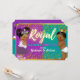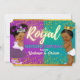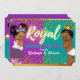 Princesa Afroamericana con adorables colas de ponis Afro usando tiara de diamante junto a un Príncipe Africano Adorable con corona de oro, pañal blanco y zapatillas. Fondo de bloques de color púrpura y Verde azulado con un toque de confeti dorado y borde de Relieve metalizado dorado. ©2022 Señales de Miss Fiesta Sassy
