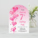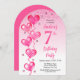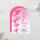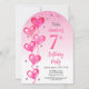 Invitación Elegante globos de corazón rosado 7 cumpleaños