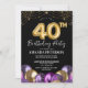 Invitación Elegante Globos Purple Gold 40 Fiesta de cumpleaño