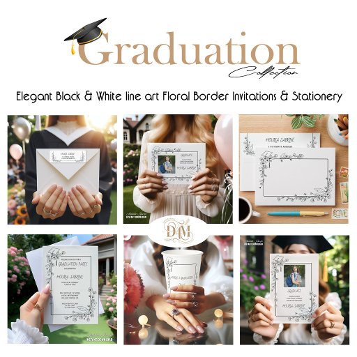 Elegant Graduation Black and white Floral BorderDiseñado por Houria Sabrine