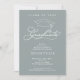 Un gorro de graduación y la palabra "graduado" en un elegante guión blanco PLUS el nombre y año de tu graduación y tu información sobre estas invitaciones a la fiesta de graduación gris plateado. CONSULTE TODA LA COLECCIÓN de colores prehechos, placas de papel, servilletas, tapones de grad y más en nuestra tienda.