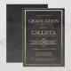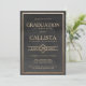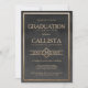 Esta elegante y moderna invitación a la fiesta de graduación es perfecta para un evento elegante y elegante. Muestra un marco de borde dorado falso con fuentes doradas contemporáneas sobre un fondo de color negro. Es artístico, glamuroso y bonito, el diseño perfecto para su día especial. ***NOTA DE DISEÑO IMPORTANTE: Para cualquier solicitud de diseño personalizado, como solicitudes de productos coincidentes, cambios de color, cambios de posición o cualquier otra solicitud de cambio, haga clic en el botón "MENSAJE" o envíe un correo electrónico al diseñador directamente a lafemme.art@gmail.com. Incluso puede enviarle un correo electrónico solicitando un diseño completamente personalizado y nuevo.