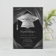 Invitación Elegante Graduación en negro de gol de plata