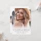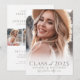 Una invitación de graduación sencilla y elegante, inspirada en el boho, con una estética luminosa y brillante. La parte frontal presenta una foto de página completa con un gradiente blanco suave en la parte inferior, enmarcando el texto con gusto. "Clase de 2025" aparece en las letras clásicas beige o taupe, seguido por el nombre del graduado y la escuela en elegante escritura manuscrita para un toque atemporal. La parte trasera se transforma en una elegante invitación a una fiesta de graduación, con tres puntos de foto centrados para mostrar momentos especiales del graduado. Debajo de las fotos, los detalles de la invitación se muestran en una fuente serif beige refinada, lo que proporciona espacio para la fecha, hora, ubicación e información RSVP del fiesta. El diseño tiene un fondo blanco cohesivo y un color beige que le confieren un toque cálido y sofisticado. Personalizable completo, puede editar el texto, las fuentes y los colores para que coincidan con su estilo personal o los colores de la escuela.