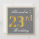 Invitación Elegante, Gris, Dorado Falso Cumpleaños 23 + Nombr