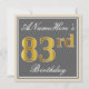 Invitación Elegante, Gris, Dorado Falso Cumpleaños 83 + Nombr