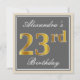 Invitación Elegante, Gris, Faux Gold 23 cumpleaños + nombre