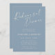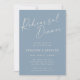 Fije el tono para una celebración elegante e íntima con esta elegante invitación a la cena. Con una mezcla moderna de escritura fluida y una tipografía serif clásica sobre un polvoriento fondo azul, este diseño atemporal es perfecto para parejas que aman la simplicidad sofisticada. Personalízalo con nombres, fecha, hora y detalles de ubicación para un toque personalizado. Ideal para reuniones formales o informales que conduzcan al gran día.