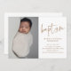 Esta moderna invitación para el bautismo de bebé fotográfico incluye arte de bautismo con escritura caligráfica con letras a mano que se puede mover fácilmente y se puede cambiar el color de, una foto vertical y texto editable. Haga clic en el botón de edición para personalizar de este diseño.