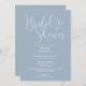 Esta polvorienta y elegante escritura azul invitación a la ducha de novia se puede personalizar con toda su información especial de evento y el código QR del registro al revés. Diseñado por Thisisnotme©