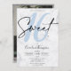 Invitación Elegante guión de mármol blanco foto azul Sweet 16