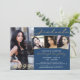 Invitación Elegante guión dorado azul 4 Graduado de fotos