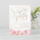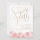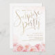Moda moderna guión "sorpresa fiesta", diseño flamante purpurina de oro y color de agua rosa brillante de diseño floral, elegante y elegante, gran invitación sorpresa para adultos de cualquier edad.