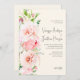 Esta elegante invitación a bodas florales de marfil y ruidosa presenta hermosos rosas polvorientos, flores de peonía rosada, eucalipto, vegetación y caligrafía de escritura elegante en un fondo de marfil. En la parte posterior de la tarjeta aparece un fondo de marfil. Esta invitación es perfecta para que la pareja tenga su boda en un local romántico, formal, elegante, moderno, moda, sofisticado, rústico, moderno o boda al aire libre.