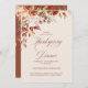 Celebre el día de gracias este año con estilo con este lindo y moderno patrón de invitación a la cena con escritura moderna de terracota, elegantes florales sobre un hermoso fondo crema. La parte posterior de la tarjeta tiene florales complementarios sobre un fondo cálido de terracota. Fácil de personalizar de todo el texto. ¡Feliz Día de Acción de Gracias!