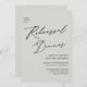 Elegante Script Moderno Gris Minimalista Código QR Tarjeta de invitación a la cena de ensayo para la cena. Celebra tu día especial con esta elegante y hermosa tarjeta de invitación a la boda para embellecer tu ocasión especial. Todos los textos están preorganizados para que puedas personalizarlos fácil y rápidamente con tus propios detalles. Si necesita más personalización o elementos coincidentes, por favor háganoslo saber - nos encantaría ayudar.