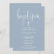 Esta polvorienta y elegante invitación al bautismo de escritura azul puede ser personalizada con toda su información especial de celebración. Diseñado por Thisisnotme©
