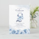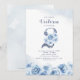 Invitación Elegante guión purpurina azul floral 2º cumpleaños
