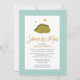 Celebra la llegada de tu precioso bebé con esta elegante, moda, bonito y soñada "Invitación a la ducha por correo" que incluye un dinosaurio dormido verde bajo las estrellas en la parte delantera. El título presenta Relieve metalizado dorado como caligrafía. El fondo presenta un patrón de flecha azul turquesa verde. Todos los textos están predispuestos para que puedas personalizarlos fácil y rápidamente con los detalles de tu ducha de bebé.