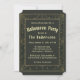 Esta elegante invitación de fiesta de Halloween en negro y oro tiene un marco vintage con telarañas doradas. El fondo es negro, todo el texto es dorado. La ocasión "Fiesta de Halloween" está arqueada.
