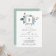 Invitación Elegante Hydrangea Azul | Monograma blanco Boda