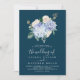 Esta elegante marina azul hidrangea en una sola invitación es perfecta para un boda de primavera o verano. El diseño floral clásico presenta hidrangeas de color azul en polvo suave acentuadas con flores rosas neutras y hojas verdes. Guarde el papel incluyendo los detalles en la parte posterior de la invitación a la boda en lugar de en una tarjeta separada. Incluya también la información de RSVP si su invitado responderá electrónicamente (opcional).