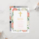 Invitación Elegante Hydrangeas Rosa Cruz de Oro Baptismo