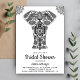 Sorprenda a sus huéspedes con esta elegante invitación a una ducha de matrimonio étnica que incluye un bello elefante artístico con un fondo blanco. Simplemente agregue los detalles de su evento en esta plantilla fácil de usar para convertirla en una invitación única. Voltea la carta para revelar un elegante patrón indio tradicional en blanco y negro en la parte trasera de la tarjeta.