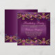 Esta elegante invitación al cumpleaños del personalizable presenta flores de oro y rosa en un fondo morado. Personalizar añadiendo tus datos en el color y la fuente de tu elección.