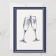 Elegancia intemporal para las celebraciones de jubilación Esta invitación a la jubilación exuda elegancia formal con su fondo azul profundo y su centro blanco roto, ofreciendo un atractivo clásico para cualquier evento. La cuidada mezcla de guiones y tipos de letra serif complementa la sencillez general, mientras que un gráfico de champán de vidrio añade un toque de celebración. La parte trasera de la tarjeta refleja este estilo refinado, con dos copas de champán que tocan los nuevos comienzos. Ideal para fiestas corporativos o familiares, esta invitación es fácilmente personalizable para su evento especial.