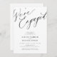 Simple moda mínima caligrafía caprichosa blanco y negro estamos contratados invitación de la fiesta de compromiso de guiones.