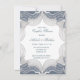 El diseño de esta orilla de encaje ornamentado presenta delicados patrones florales y detalles intrincados de estilo bordado, creando un marco romántico y atemporal ideal para invitaciones a la boda, invitaciones o keepsakes. El fondo de gradiente azul suave añade un toque de sofisticación, mientras que el centro en blanco proporciona espacio para texto o fotos personalizadas.