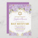 Invitación Elegante Lavanda y Bate floral de oro Mitzvah