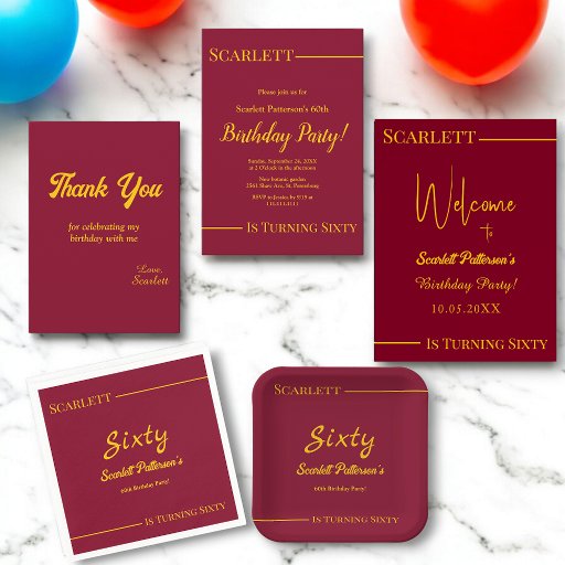 Simple Burgundy And Gold Chic Birthday CollectionDiseñado por Mohamed Sherif
