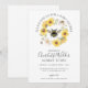 Una elegante abeja rodeada de flores, mamá para ser invitada a ducharse con el tema del bebé. Una invitación artística de estilo rústico-terrenal.