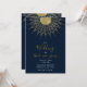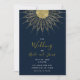 Invitación Elegante Mandala de Sol Dorado Abstracto Boda Azul