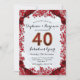 Invitación Elegante marco chic de rubí del 40º aniversario de
