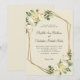 La elegante invitación de boda presenta rosas de boda románticas en blanco vainilla acuarela con toques de rosa sonrosado que se muestran en un exuberante follaje verde sobre un fondo de cascarón de huevo. Un marco geométrico de cristal con forma de cristal de color dorado brillante y chic completa el diseño de moda, mientras que la redacción tradicional y clásica proporciona una sofisticación atemporal. Personalice el diseño de la boda con sus detalles en elegante letra de carbón gris y letra script. La parte posterior de la tarjeta es un elegante cascarón de huevo. No dude en hacernos llegar sus preguntas a invitationsuites@gmail.com si tiene alguna duda sobre este o cualquiera de nuestros diseños.
