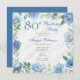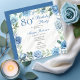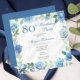 Invitación Elegante marco floral azul Rosa 80 cumpleaños fies