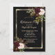 Invitación Elegante marco floral dorado Rosas de Borgoña Negr