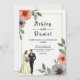 Esta elegante invitación a una boda floral acuática es perfecta para un boda moderno. El diseño romántico presenta un marco floral de color agua elegante con un ilustracion de novia y novio y una caligrafía negra con un fondo blanco.