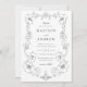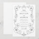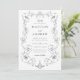 Presenta tu día de boda con una atemporal elegancia utilizando esta invitación de boda con marco floral ornamentado elegante. El diseño presenta sus nombres y detalles de la celebración bellamente dispuestos en el centro en tipografía clásica negra, rodeados por un intrincado marco floral de inspiración vintage. La paleta de colores en negro y blanco realza el aspecto formal, permitiendo que los delicados elementos botánicos y acentos ornamentales resalten con claridad impactante. Inspirada en la papelería grabada tradicional, la tipografía refinada y la composición simétrica crean un aspecto que se siente sofisticado y duradero. Perfecta para bodas formales, lugares de finca, entornos históricos y parejas que se sienten atraídas por la papelería de boda clásica en negro y blanco, esta invitación ofrece una manera pulida y memorable de compartir su día especial con familiares y amigos.