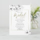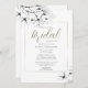 Una rama de magnolias, dibujada a mano con lápiz de grafito negro y recubierta digitalmente con Relieve metalizado dorado (¡Relieve metalizado no real!), decora este elegante, sencillo, elegante y moderno modelo de invitación a la ducha de novias. Cuenta con caligrafía de escritura moderna y elegante y un marco dorado. Lujoso pero sencillo, clásico pero moda, moderno pero atemporal. Una elección muy agradable para una boda primaveral o una ducha de novias con magnolias en el ramo nupcial o como acento.