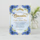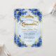 Invitación Elegante Marina Floral Azul Oro Tiara Quinceañera