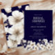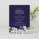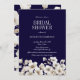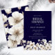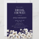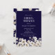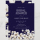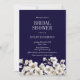 Esta elegante invitación a la ducha con flores de color blanco y marina incluye flores de otoño y de invierno. Fondo naval mostrado con texto blanco y flores de boda blancas. El fondo de los florales blancos más grandes es opcional. Se puede cambiar todo el texto, incluidos los nombres.